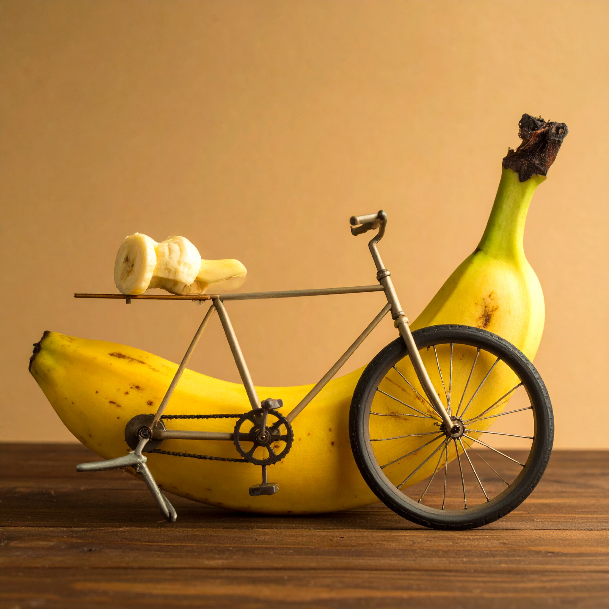 Denk aan een koelkast-bank, een koe-buggy, een banaan-fiets, etc.
